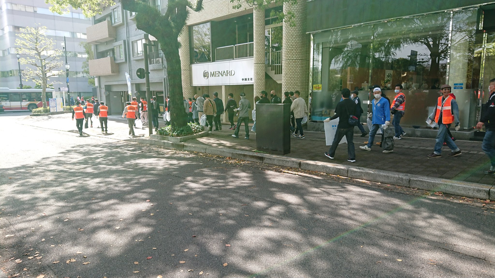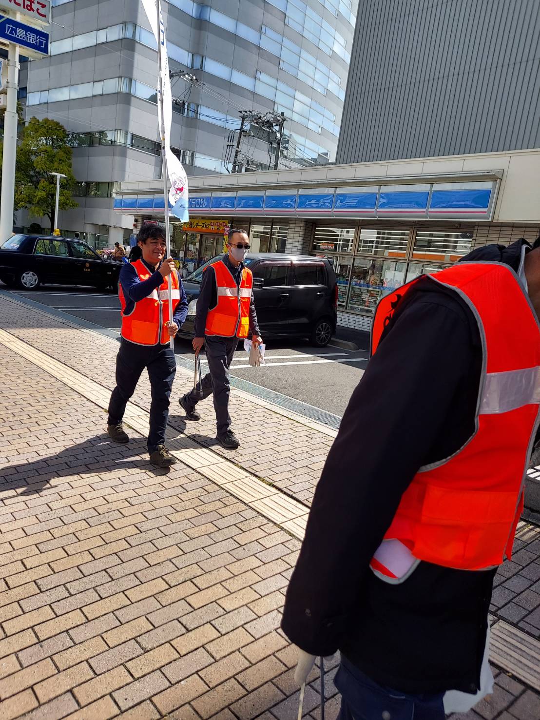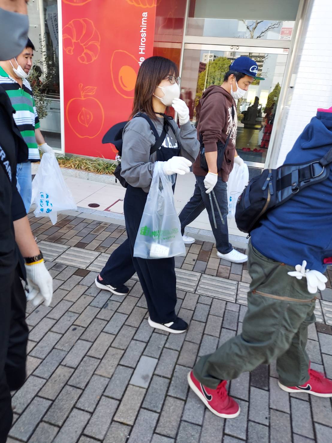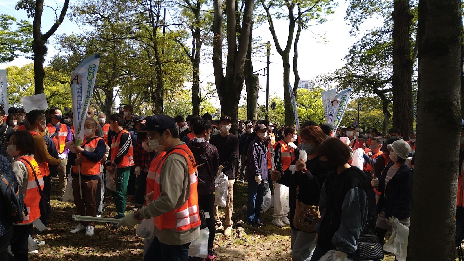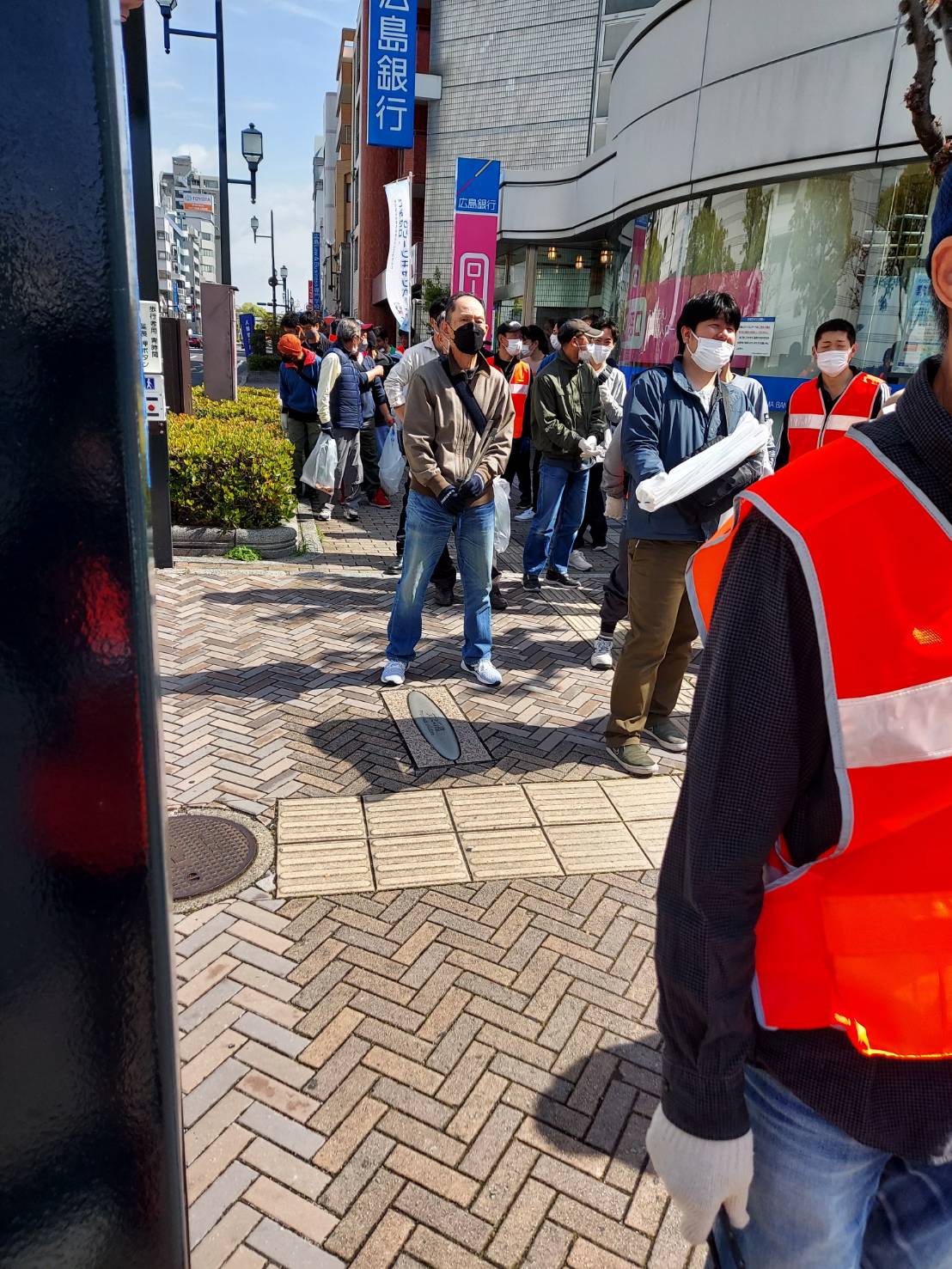 心地よく過ごしていただけるよう平和公園前の緑地帯、吉島通り、元安川の川土手を総勢300人の組合員の方々が4コースに分かれて清掃活動を行いました